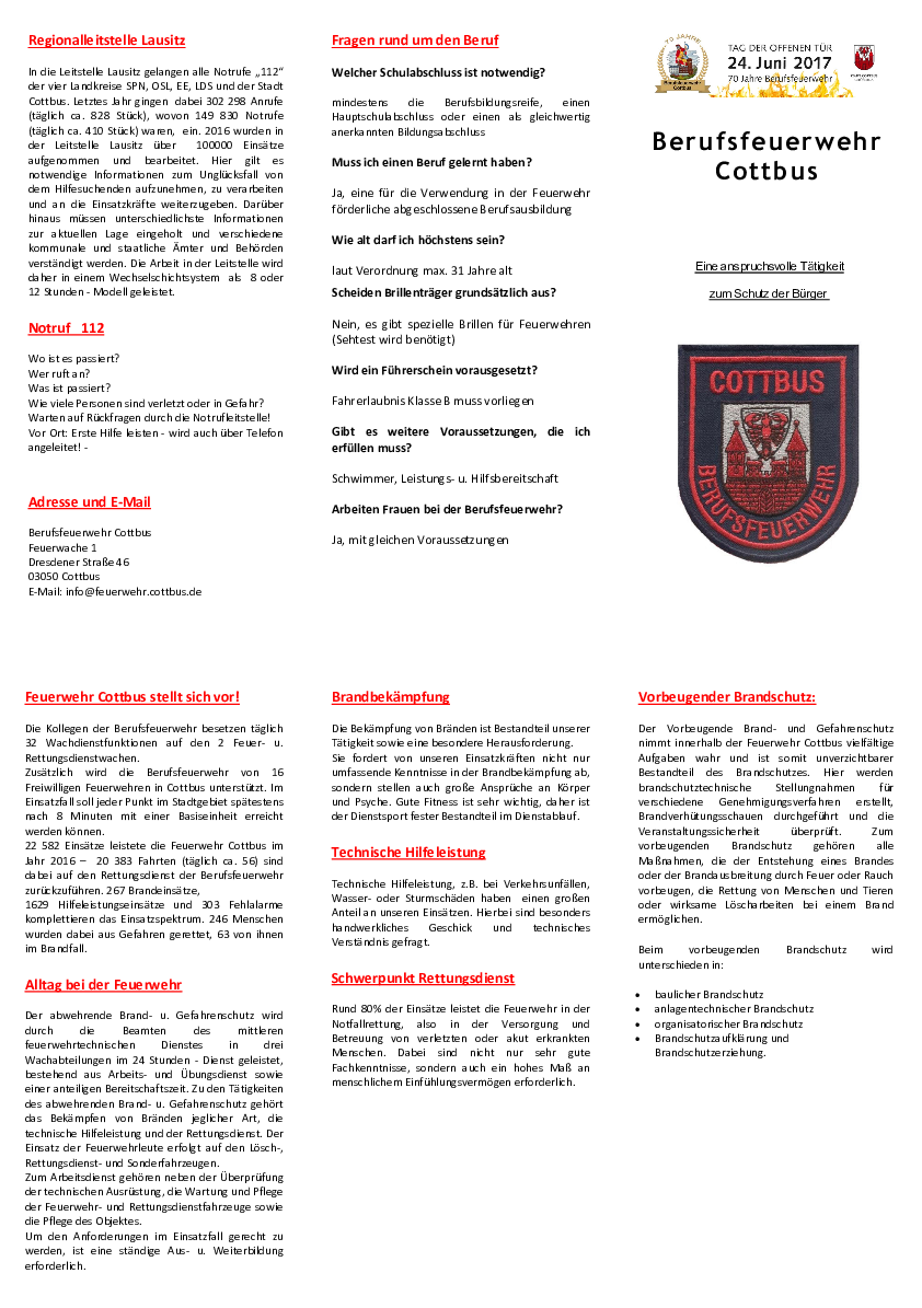 Flyer Feuerwehr Cottbus