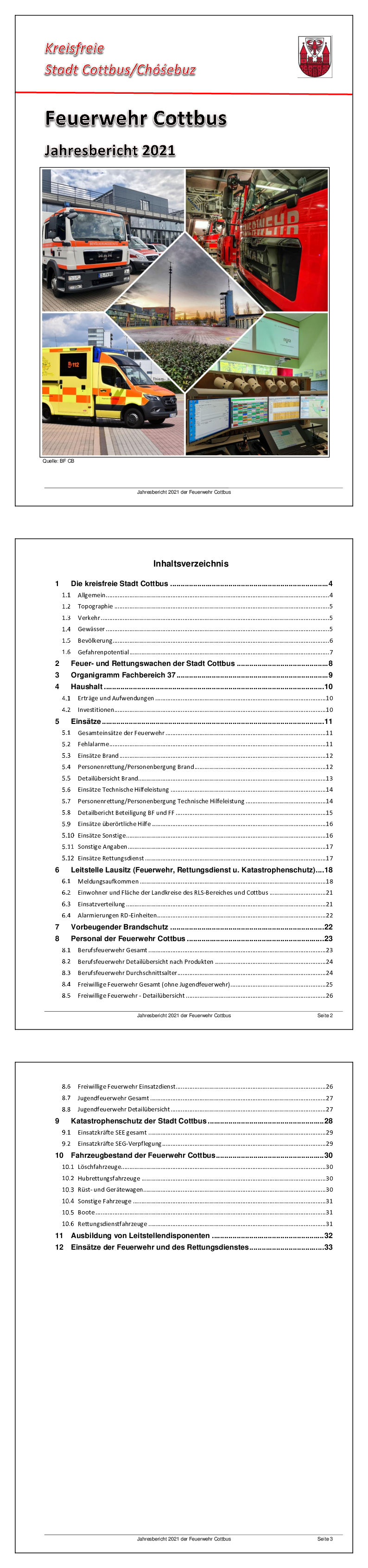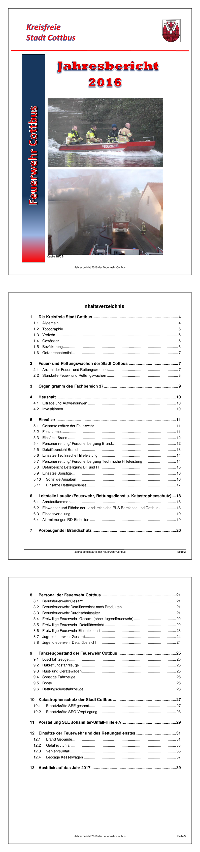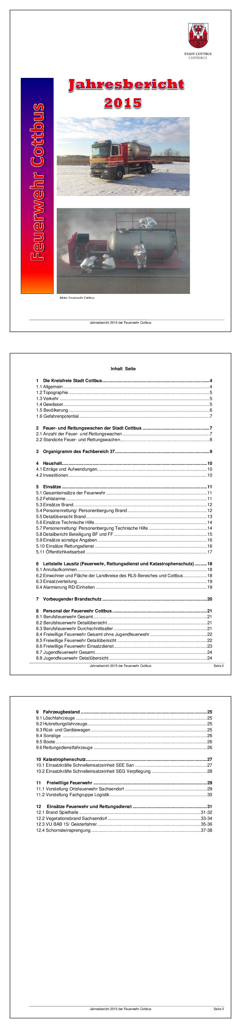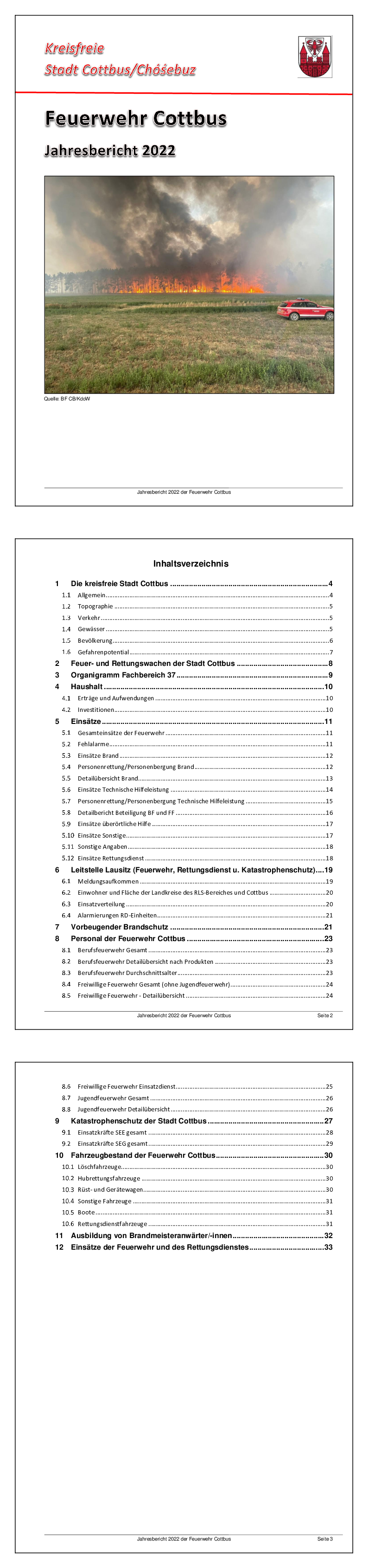 Wir stellen Ihnen hier aktuelle Dokumente zum Download zur Verfügung, die Sie über die Arbeit der Berufs- und der freiwilligen Feuerwehren Cottbus informieren: