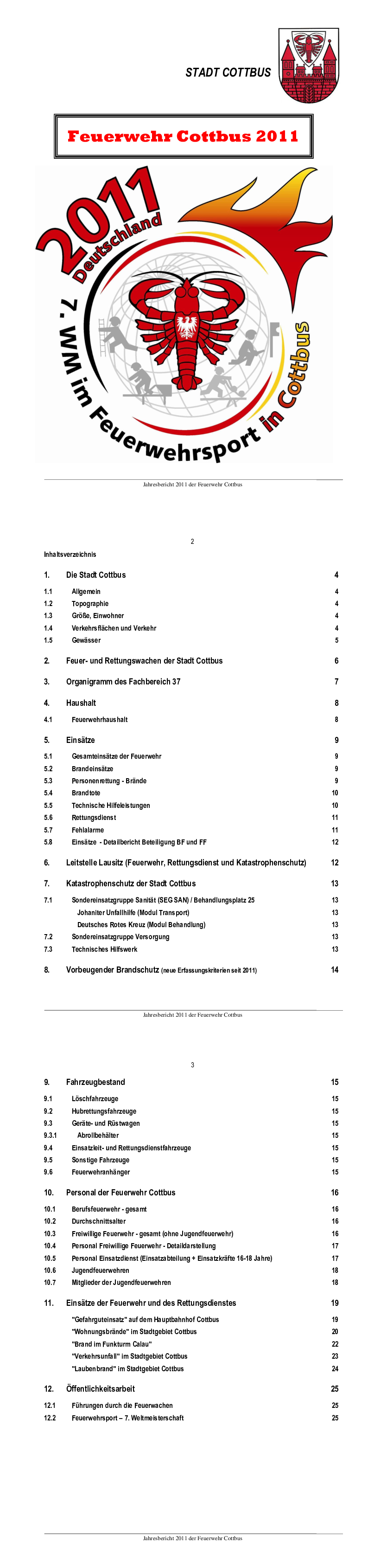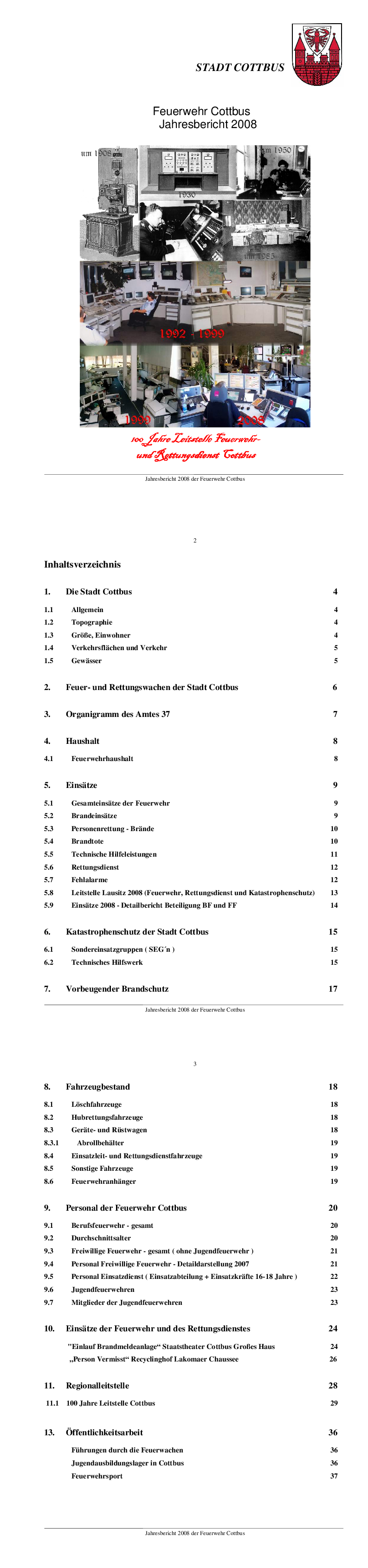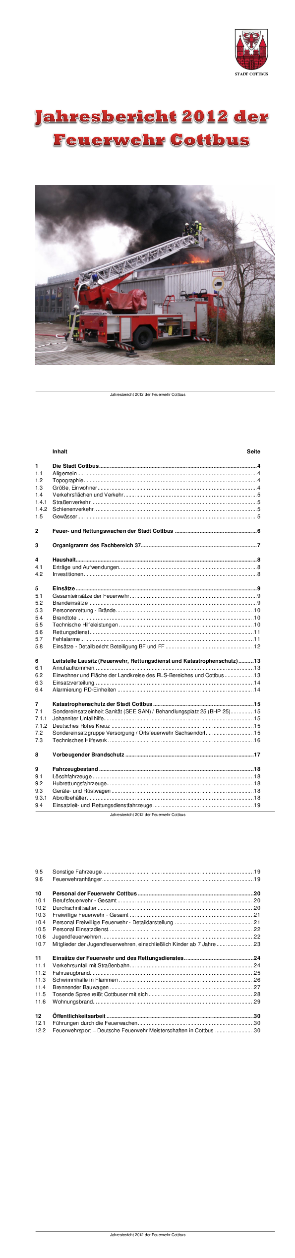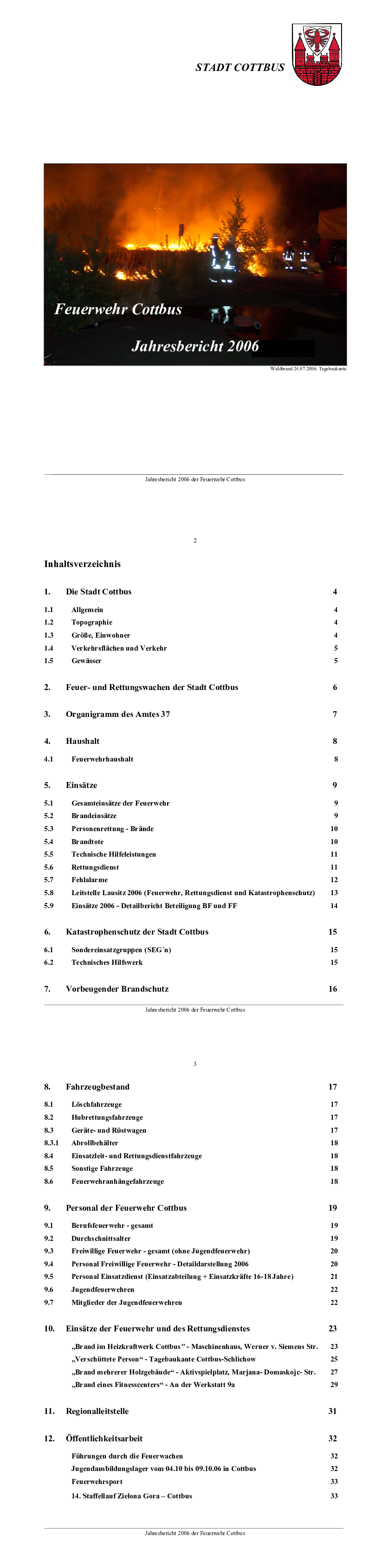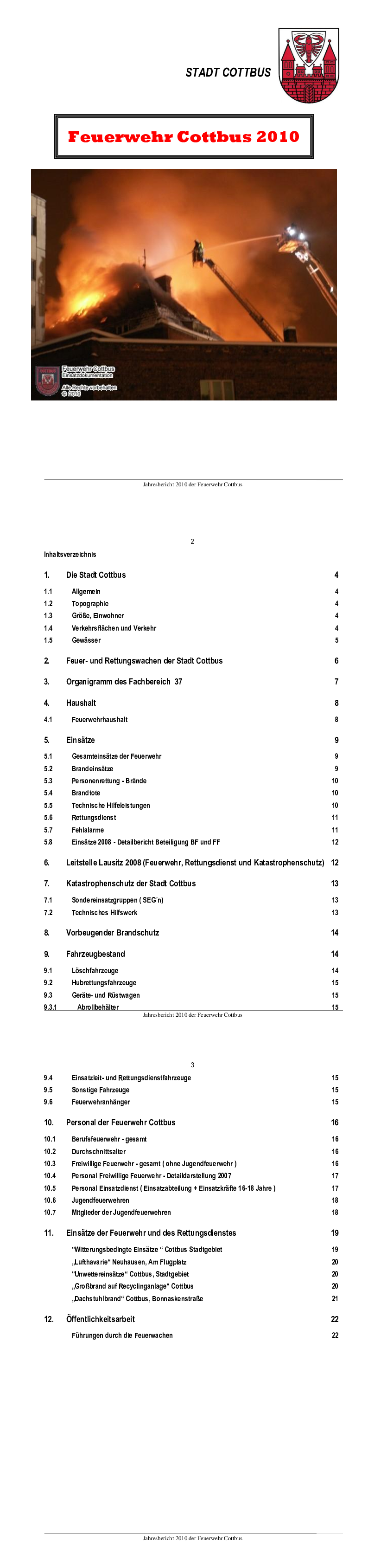 Wir stellen Ihnen hier aktuelle Dokumente zum Download zur Verfügung, die Sie über die Arbeit der Berufs- und der freiwilligen Feuerwehren Cottbus informieren: