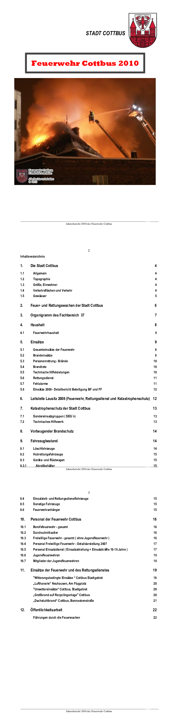 Jahresbericht der Feuerwehr 2010