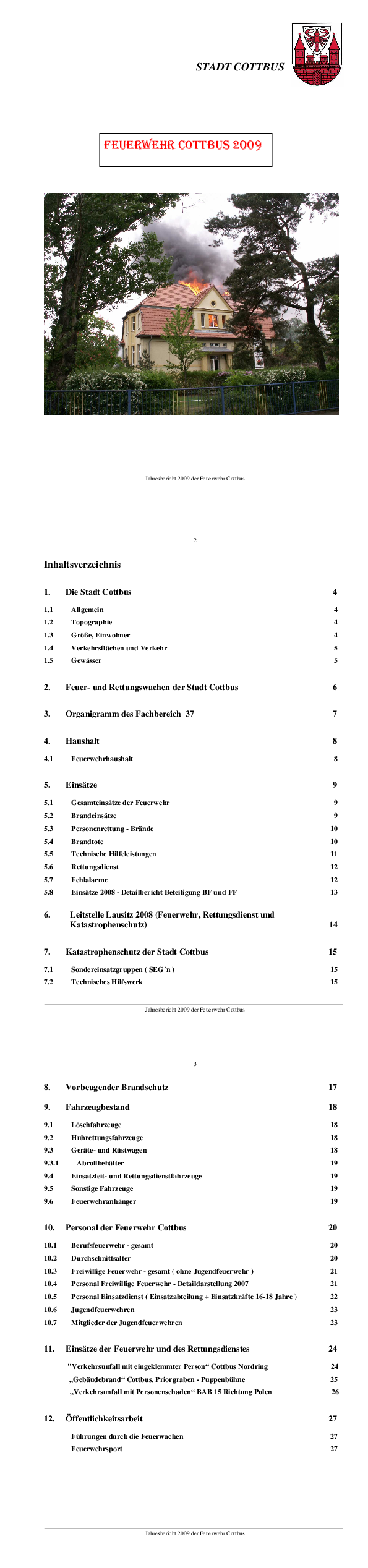 Jahresbericht der Feuerwehr 2009