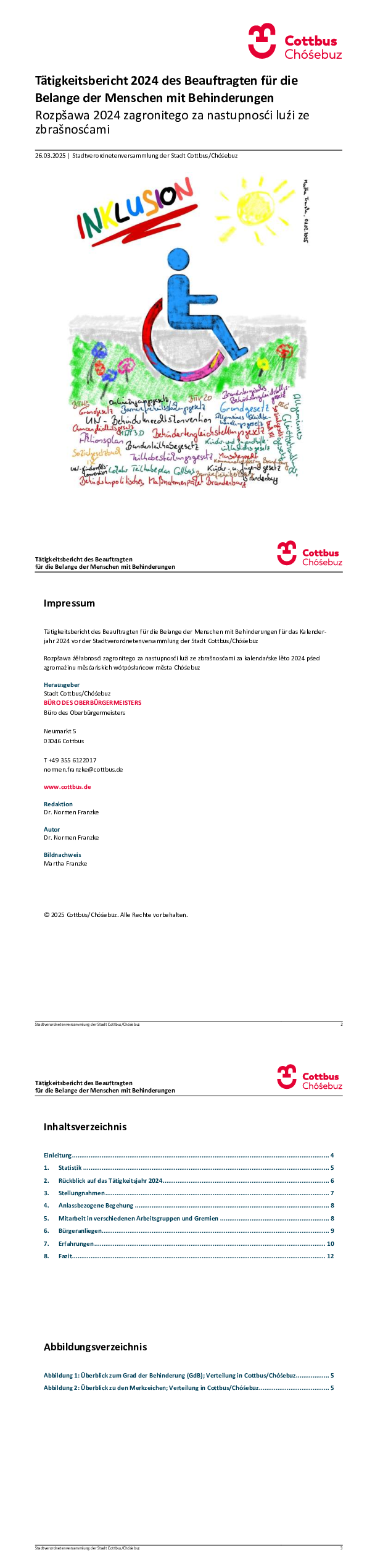 Der Beauftragte für die Belange von Menschen mit Behinderungen wird durch die Stadtverordnetenversammlung Cottbus/Chóśebuz berufen.